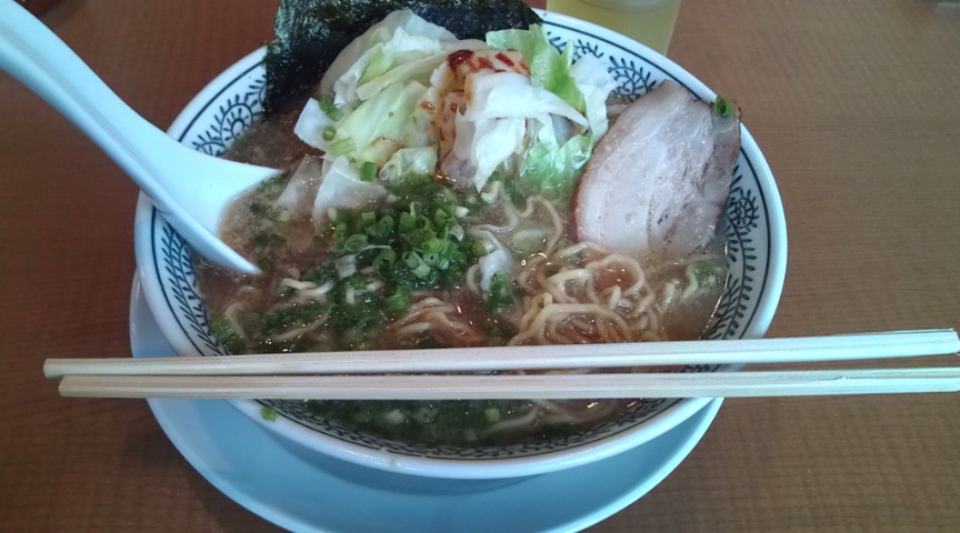 あっさりした豚骨醤油のスープの上にはキャベツのざく切り。
