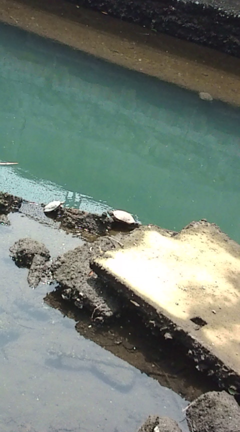 先週亀を見つけた川で今日は亀が甲羅干し!